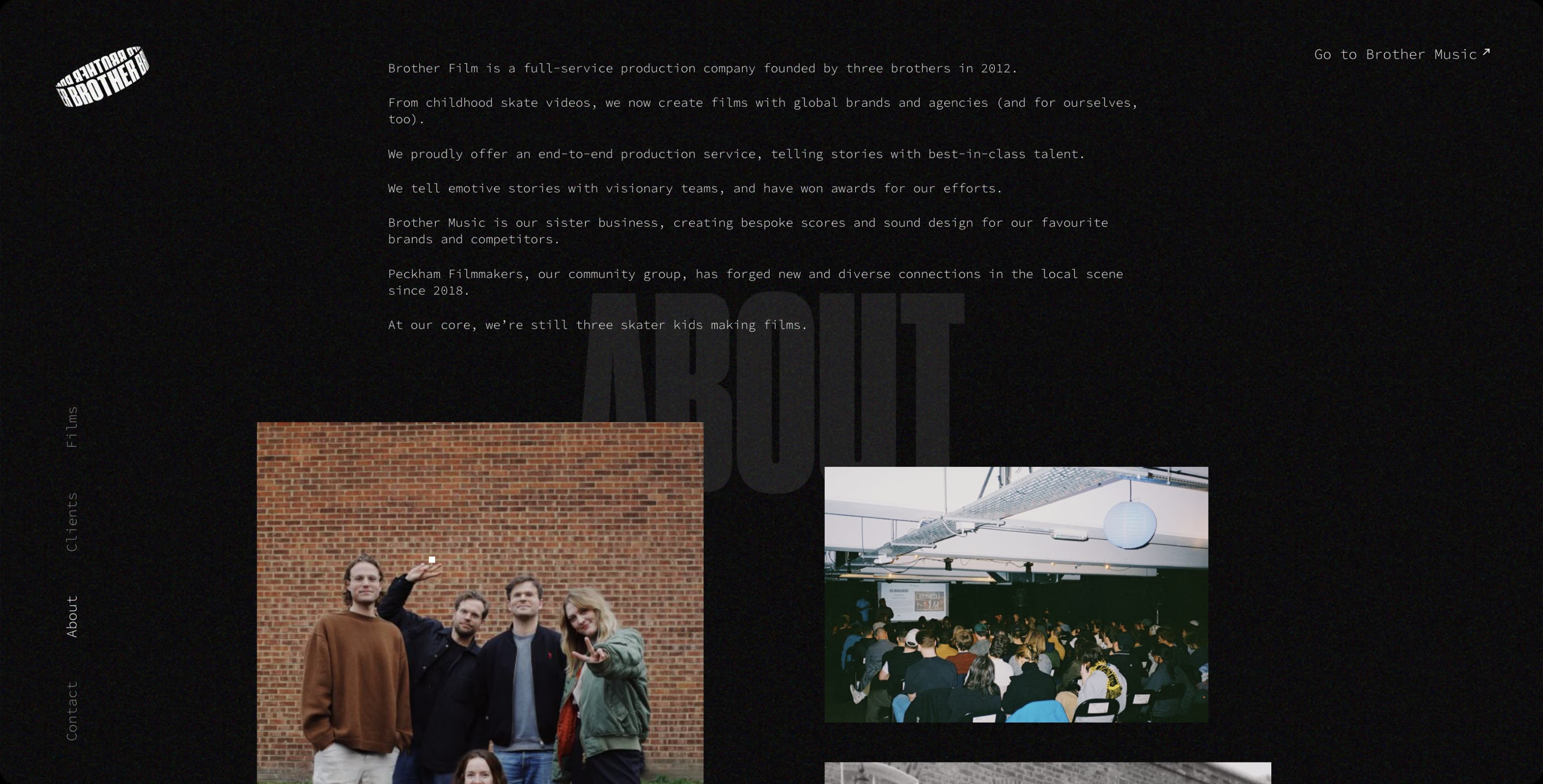 Creating a website for filmmakers is like trying to bottle lightning - the experience needs to move, breathe, and feel alive. The main challenge was translating Brother Film Co’s unmistakable creative identity and Peckham roots into an immersive digital format.